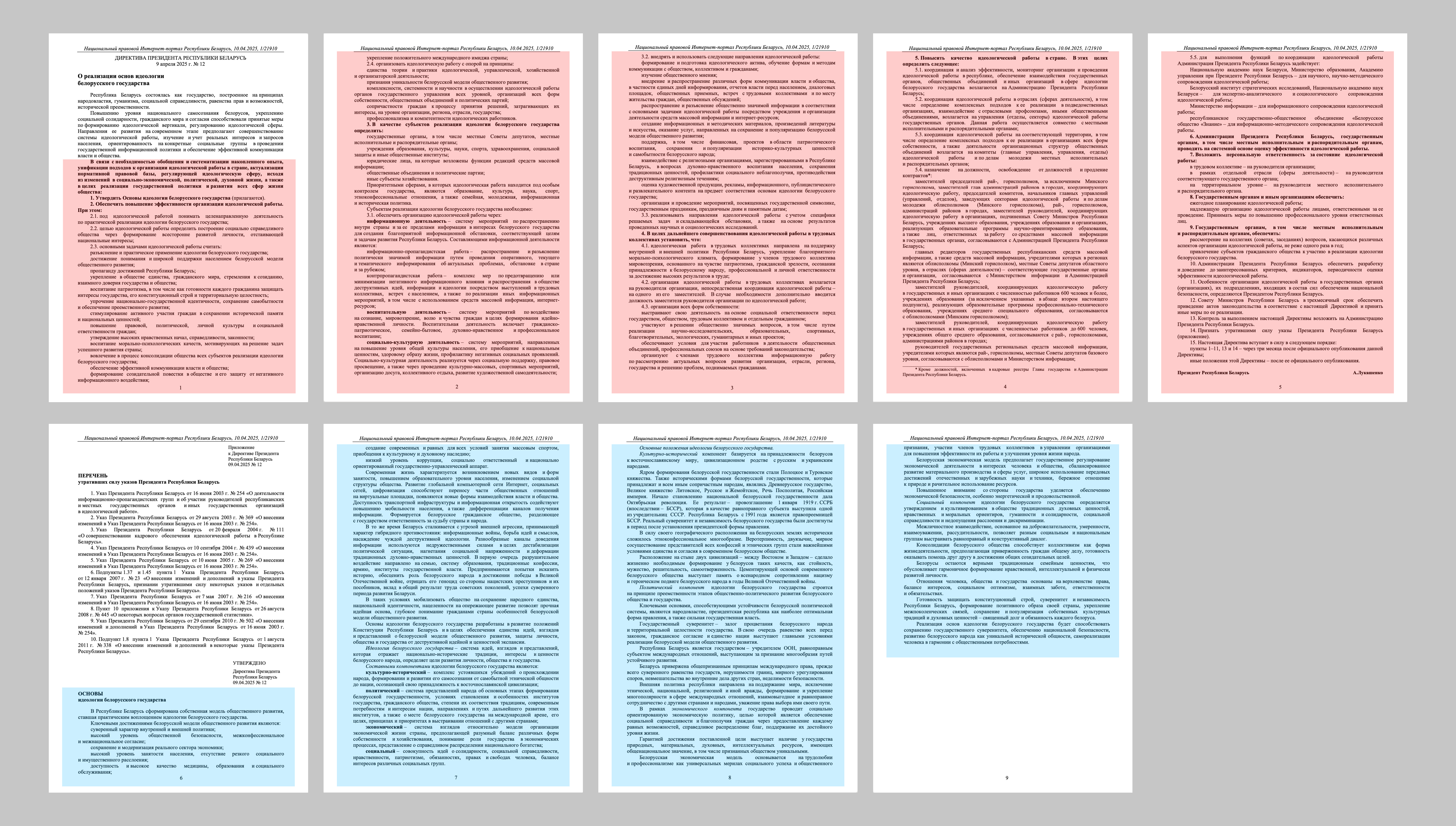 Вядома ж, гэта не першы прыняты дакумент, які вызначае ідэалагічныя напрамкі працы ў дзяржаве. Былі такія і раней (адзін з асноўных быў прыняты яшчэ ў 2003 годзе). Былі і спецыяльна навучаныя ідэолагі, якія інтэграваліся ва ўсе дзяржаўныя ўстановы, былі ідэалагічныя мерапрыемствы — і ўсё гэта, вядома ж, аплачвалася з дзяржаўнага бюджэту.