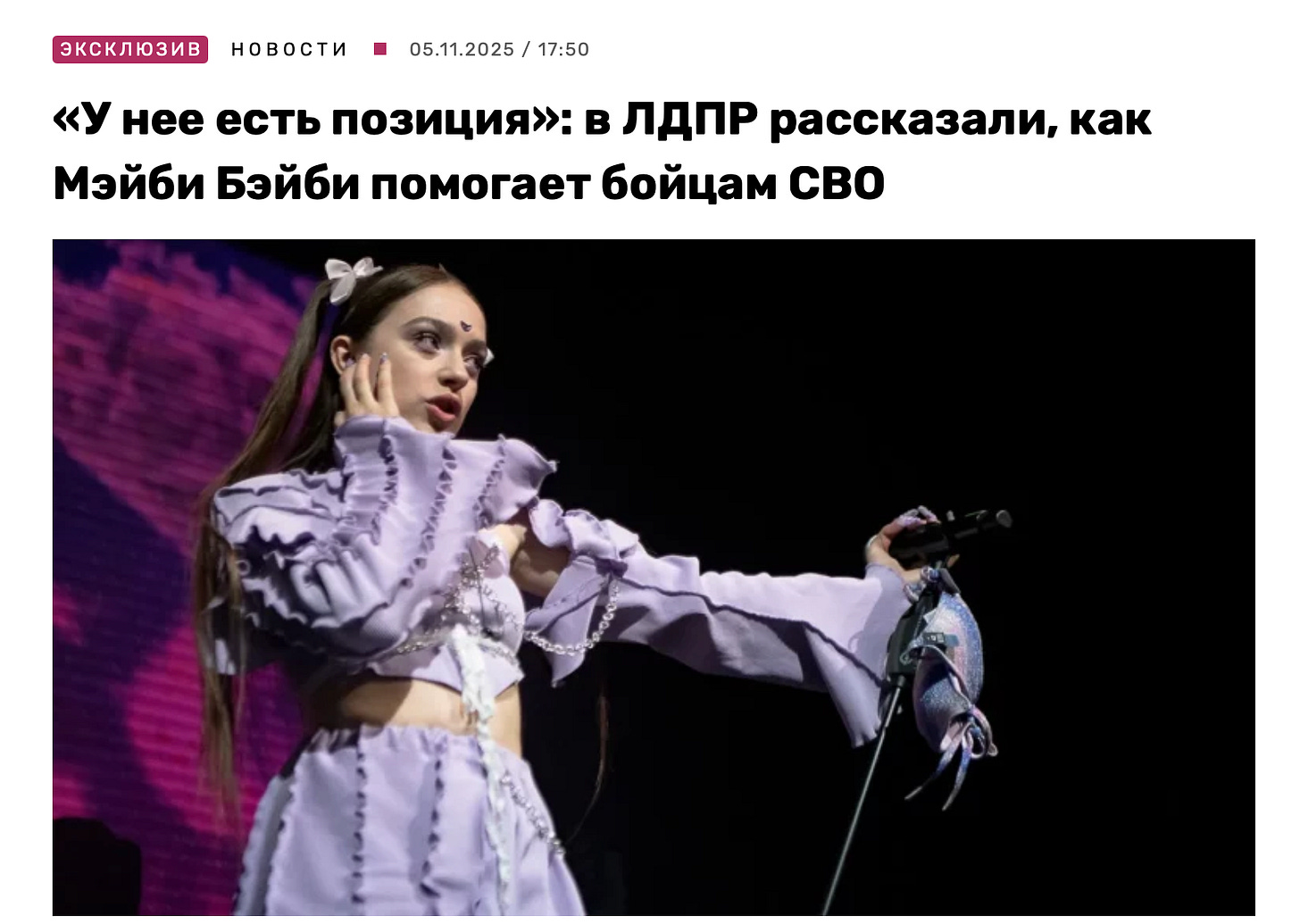 І, на жаль, схема гэтая паказала сваю жыццяздольнасць: трэба атрымаць нейкія прэферэнцыі ці, наадварот, «замаліць грахі» – ласкава просім у Крым ці Данбас. Так, спявачка Мэйбі Бэйбі (беларуска Вікторыя Лысюк) пасля таго, як трапіла ў спіс непажаданых артыстак у Расіі на глебе канфлікту з Інстасамкай, хутка зразумела, што без «ахвярапрынашэння» не атрымаецца. Бо з-за абвінавачанняў у прапагандзе ЛГБТ пад пагрозай адмены апынуўся ейны тур па 32 расійскіх гарадах. І вось ужо мы бачым, як Лысюк разам з лідарам расійскай ЛДПР адпраўляе гуманітарную дапамогу ў зону баявых дзеянняў ва Украіне.