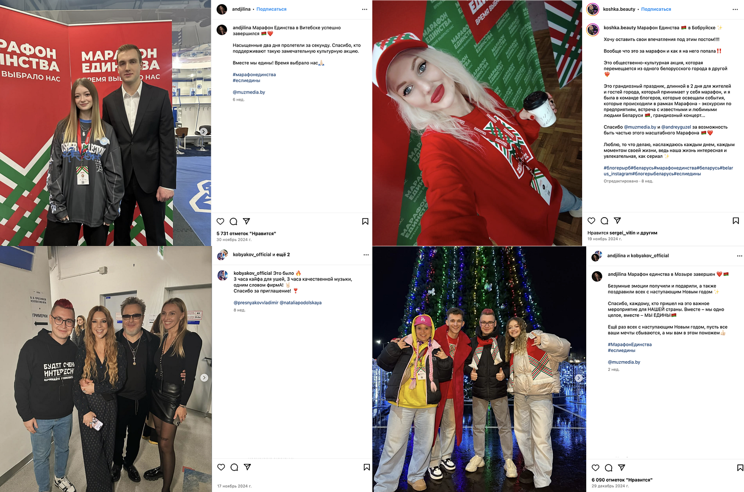 І сапраўды, некаторым, відавочна, мерапрыемства «спадабалася». Ужо пасля яго па гарадах Беларусі пакаціўся агітацыйны «Марафон адзінства», у якім бралі актыўны ўдзел як ужо згаданыя вышэй Улад Кабякоў і кампанія, так і блогеры меншага калібру, але са сваёй аўдыторыяй у абласцях і раёнах. Як, напрыклад, гамяльчанка Кацярына Пшэнцава ці барысаўчанка Кацярына Залынская.