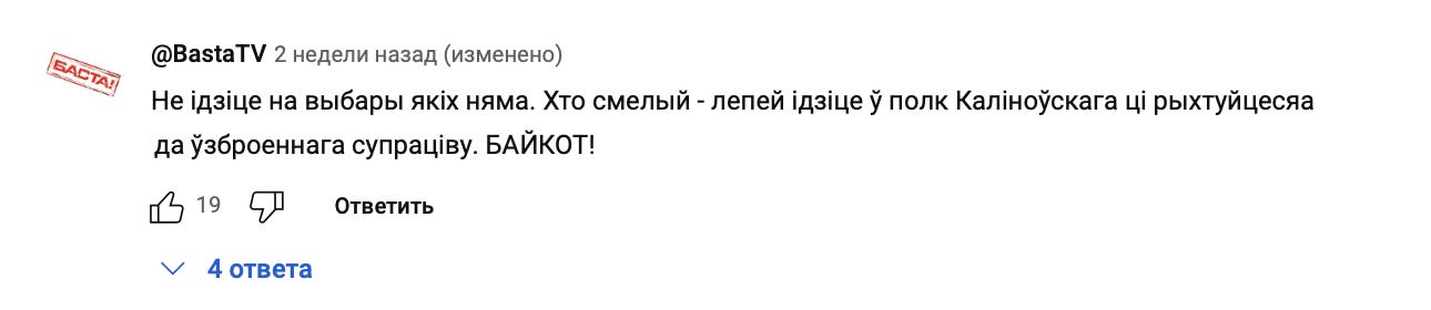 А так: голосуй против всех, потому что среди кандидатов нет ни одного, кто заинтересован в демократических переменах в Беларуси — четкий и понятный месседж. Люди, которые смотрят секундные ролики в TikTok, хотят короткой, но ясной коммуникации.